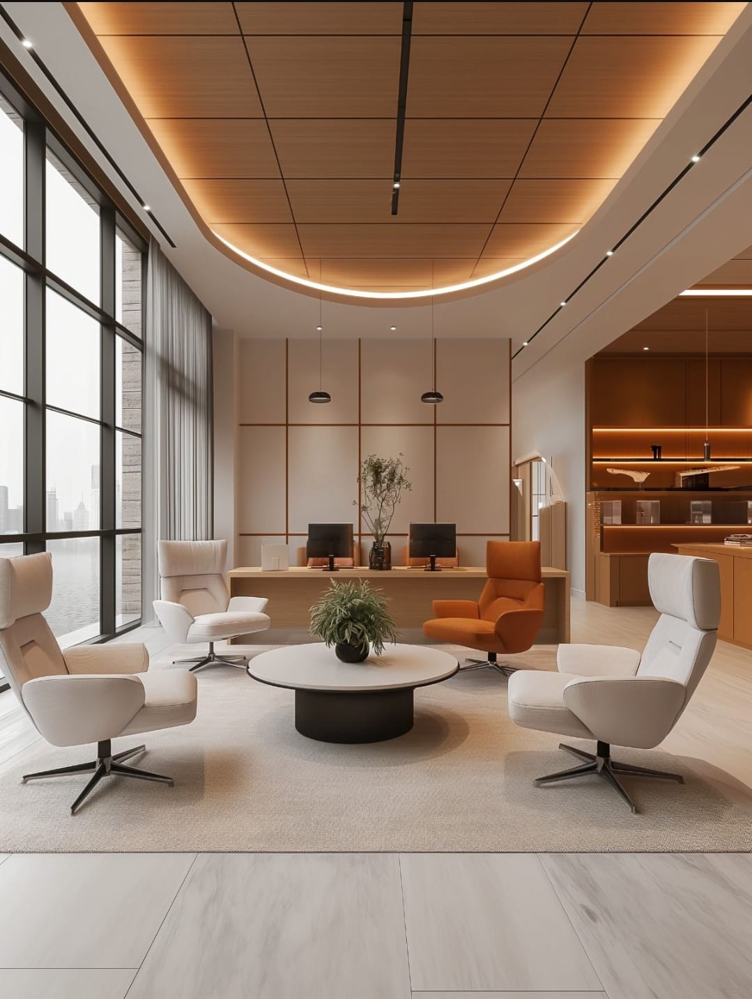 Commercial Design: We understand the importance of creating productive and aesthetically pleasing work environments. Our commercial interior design solutions are designed to optimize space utilization and foster a positive work atmosphere.